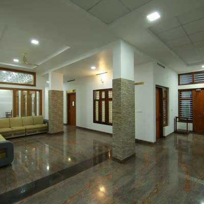 The façade is dominated by smooth white curved bands formed by pre-casted concrete structures, which run continuously from the ground up to the top floor, framing the recessed warm beige walls and arched natural wood doors; this strong vertical element contrasts beautifully with the horizontal brown paneling, black balcony railing, and the pitched terracotta-style roof. #Architect #architecturedesigns #Architectural&Interior #architectsinkerala #kerala_architecture #best_architect #house_exterior_designs #exteriorart