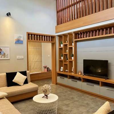 teak wood partition with rotating tv unit #TVStand #tvunitinterior #partitiondesign #teakwood #InteriorDesigner