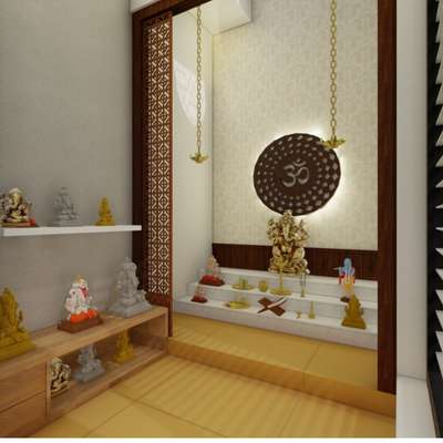 pooja room interiors pooja room next to living room , designed with cnc wood design . . . #Poojaroom #3d #InteriorDesigner #modernhome #cncdesign