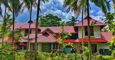 traditional Kerala home. #mezzaninefloor #VboardPartition #RoofingIdeas #ClayRoofTiles #xlpe