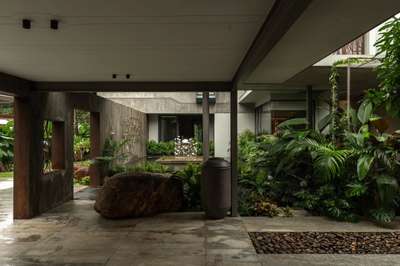 As daylight fades, the architecture reveals a new character. A home that glows with quiet confidence. Vineesh – Dhanya Residence. #nightarchitecture #architecturallighting #eveningmood #luxuryresidence #exteriordesign #architecturekerala #lightingdesign #modernhome #designedbyrad #rameesali #studiorameesali