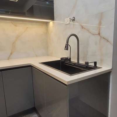 cozy and nuetral studio flat Modular kitchen - tv console - Bedroom #keralainterior #KeralaStyleHouse #keralaarchitectures #interiordesignkerala
