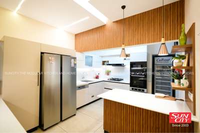 Earthy Elegance Meets Modern Functionality A fully customised kitchen designed to balance beauty and practicality. Featuring semi-glossy PU-finished cabinets in a custom shade, premium quartz countertops, and a sleek breakfast counter highlighted with crystal pendant lights. The extended crockery shelf blends seamlessly with the wall cabinetry, while the open layout ensures natural light and clutter-free spaciousness. Rich teakwood finishes add warmth, blending earthy, modern colonial, and contemporary styles into a timeless, raw yet refined aesthetic. A space crafted with purpose, comfort, and individuality. #KitchenInterior #interiordesign #moderncolonialdesign #conteporaryhouse #custominterior #functionalluxury #openplankitchen #opendesign #teakwood #pupolish