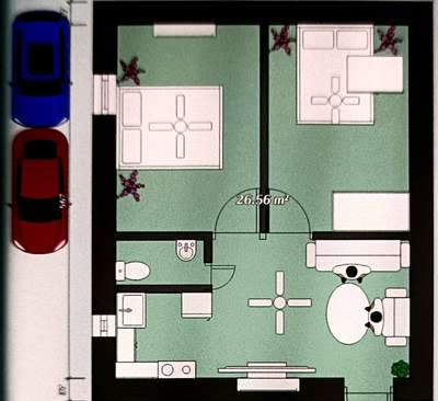 1 BHK plan in small area (4/- per square foot)